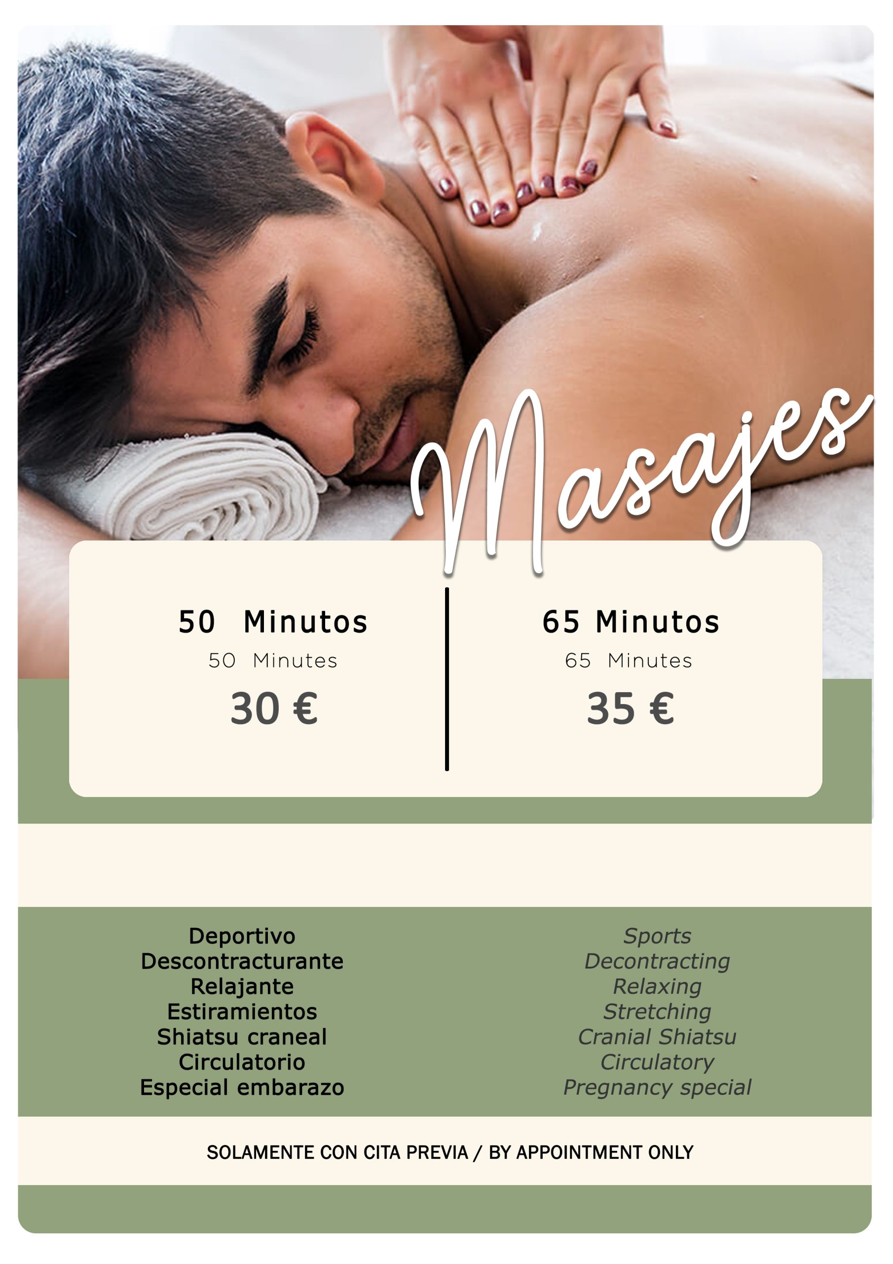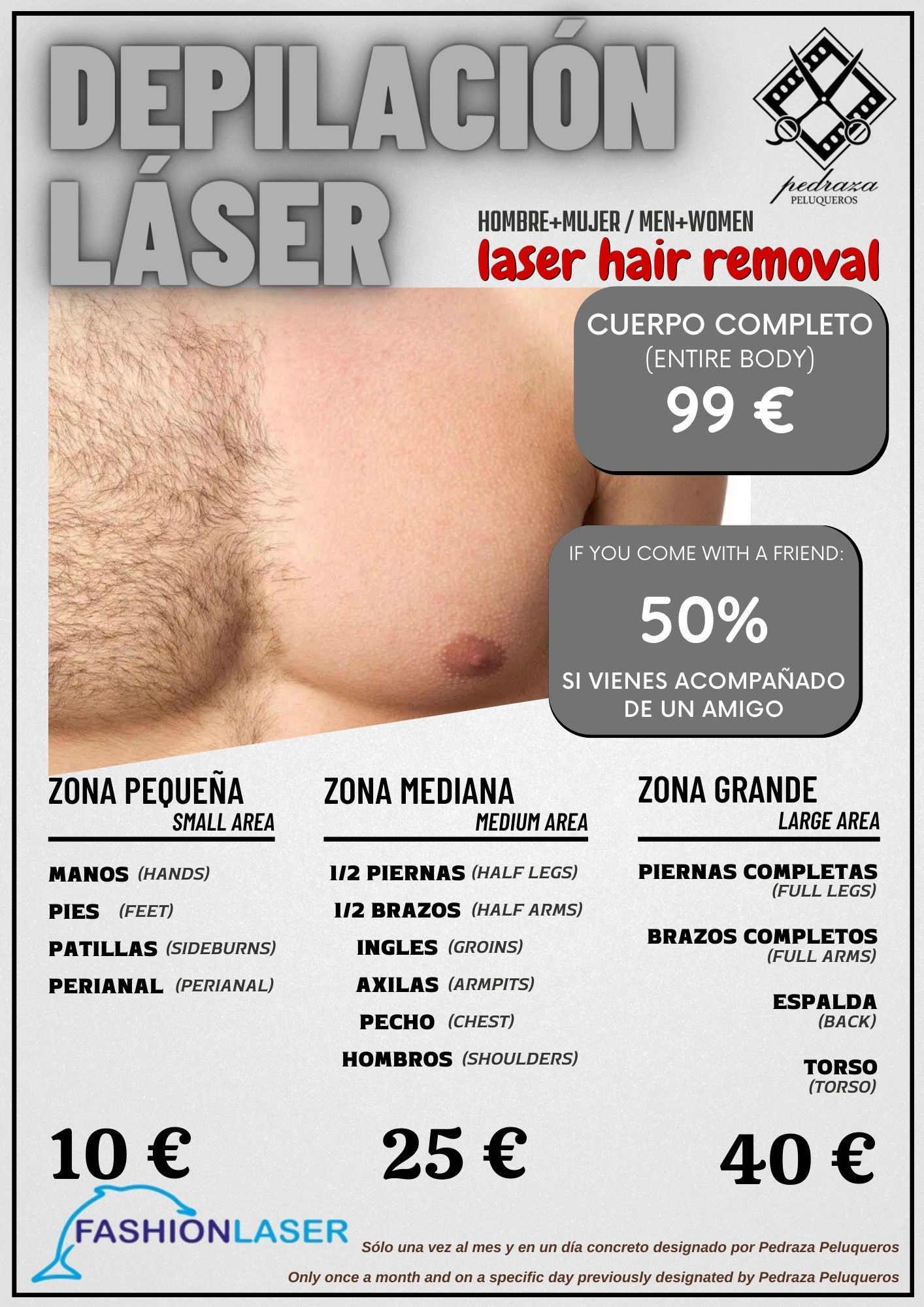 Junto a todo ello ofrecemos, sólo con cita previa, servicios de depilación láser de diodo para hombres y mujeres, masajes para hombres y mujeres y maquillaje femenino.